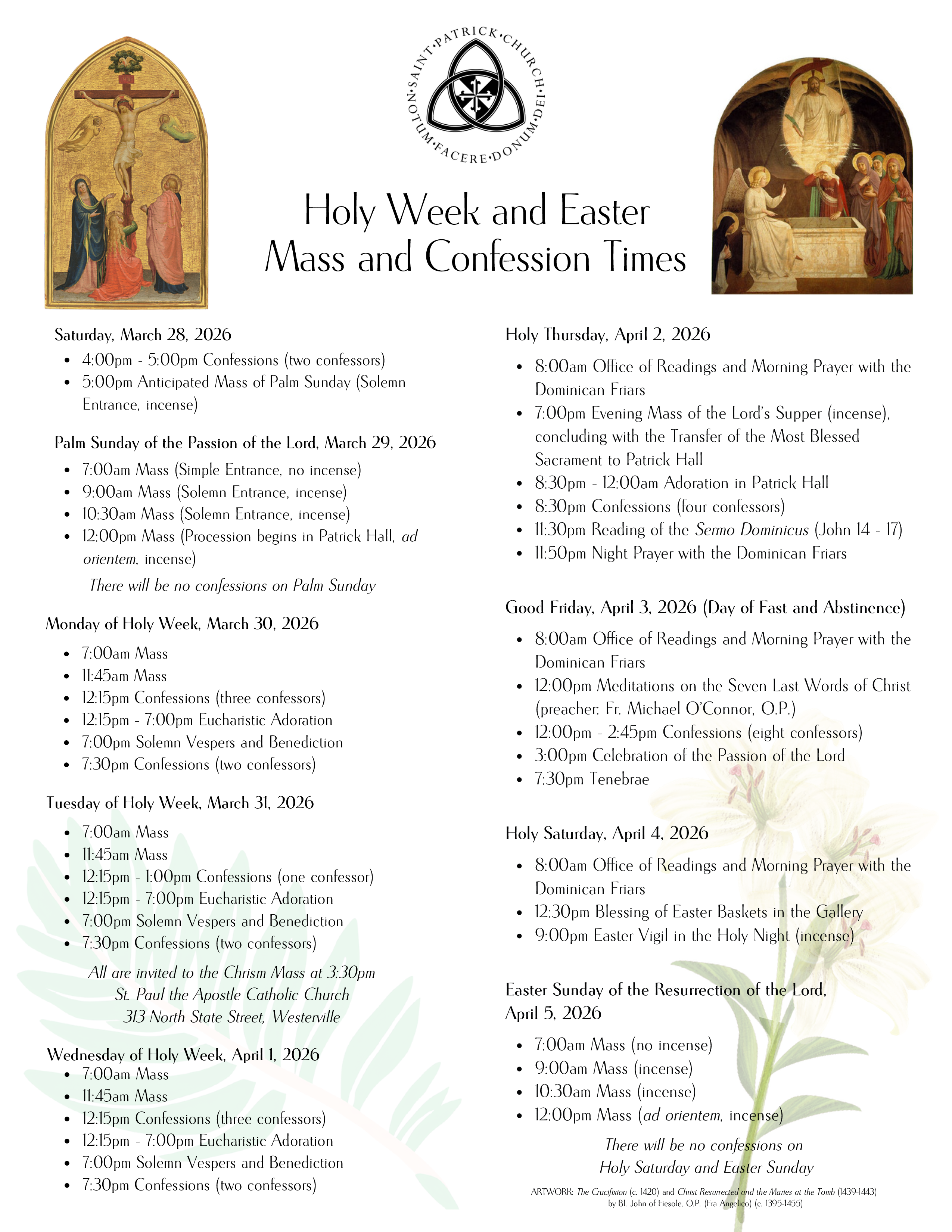 Join us! We’d love to welcome you to our Church and have you worship with us. Find Mass and Confession times by clicking the button below.